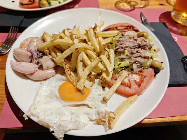 We mogen om 8 uur aanschuiven voor het diner. Voor gerecht met inktvis en hoofdgerecht met een stukje vlees. En bijpraten met de rest in de groep, wat is dit toch leuk, al die gelijkgestemden bij elkaar.