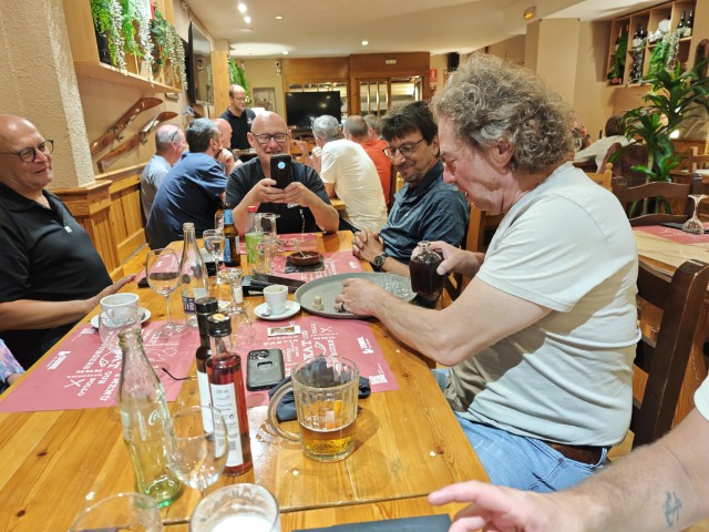 Om 3 uur rijd ik Spanje in en het plaatsje Llivía, een enclave in Frankrijk. De motor zet ik voor het hotel, en zie al een groep rijders zitten. Even bijpraten, maar ook de kamer inchecken en omkleden. Motor broek uit en spijkerbroek aan.