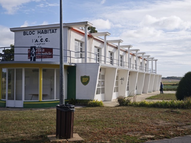 Hierna weer de snelweg op. Het verkeer gaat lekker en om half 9 rij ik over het nog overgebleven startstuk van het oude circuit van Reims. Aan de andere kant van de tribune staan nog wat garage boxen, deze zijn wel gerestaureerd en hebben de tand des levens overleefd. De tribunes en pitmuur eigenlijk een stuk minder. het circuit werd in 1972 om financiële redenen gesloten en in 2002 is het grootste gedeelte gesloopt. Er is nog wel een vrijwilligersorganisatie die de restanten probeert bij te houden.
