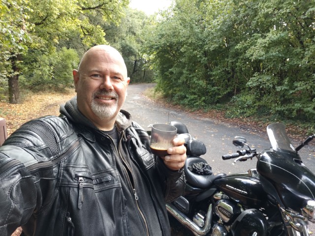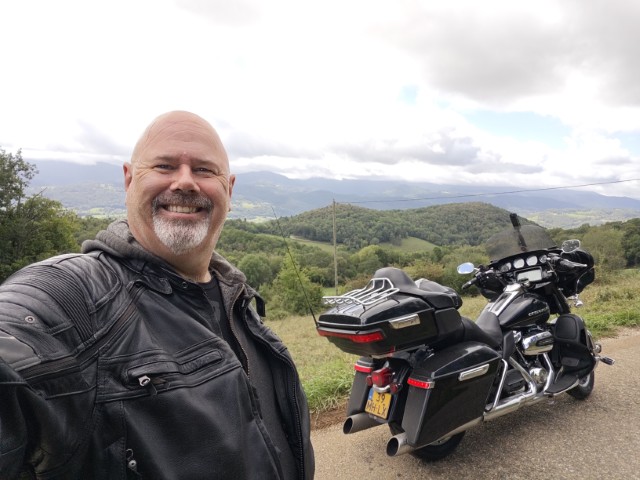 De zon schijnt als ik opsta, een goed begin dus. Na het ontbijt (met een zeer smakelijke croissant) rol ik de motor van de binnenplaats naar de straat voordat ik de Harley start, wel zo lief toch.
