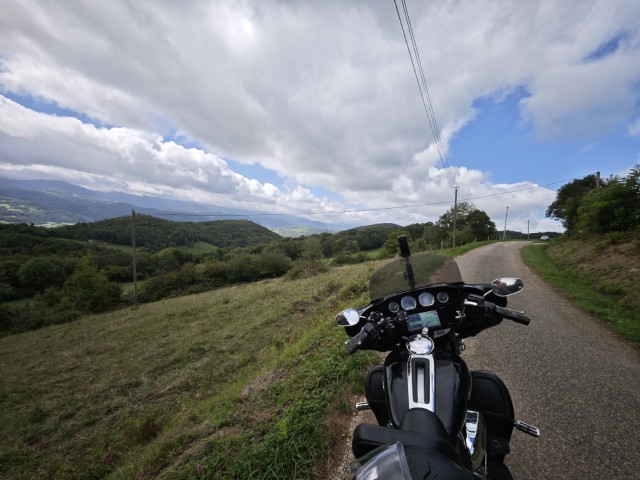 De dag begint bewolkt, maar ik laat lekker de regenjas in de zijkoffer. Ik begin direct met een stuk aan elkaar gekoppelde bochten, lekker. Om half 10 stop ik even om een vers bakkie koffie te zetten. In de schaduw en dan trek ik ook maar even een vest uit. Ik vervolg de weg richting Cazenave, hier wordt het ook al warm. De volgende tussenstop is op de D20 bij Pas du Souloumlorie, 911 meter hoog, hierna volgt de grot, Grotte Mas d'Azi. Wat een spectaculair stukje weg, door de berg, via een grot. Helaas heeft mijn nieuwe Insta360 camera dit stukje niet gefilmd. Balen